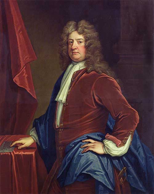 Russell purchased from within his own family an estate at Chippenham near Newmarket in Cambridgeshire in 1689 which was probably financed out of the profits of his naval career. Between 1698 and 1712 Russell had his Chippenham house reconstructed by the architect Thomas Archer, and the Chippenham estate remodelled, relocating the village and creating a walled park. The staircase at Chippenham Hall was embellished with paintings of Russell’s victory at La Hogue, while two lines of lime trees in the park are said to have been planted to represent the positions of the French and Anglo-Dutch fleets at the battle.