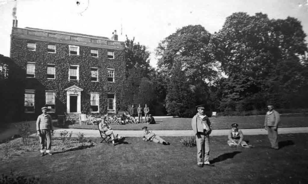 Saffron Walden Voluntary Aid Detachment (V.A.D.) Hospital was open and ready for occupation from April 1915, in a large house set amongst imposing grounds, Walden Place. It was the property of W.T. Tuke, and was lent by Mr F. Tuke for the duration of the First World War. It had accommodation for 50 patients in twelve wards. Each ward comprised four rooms of six beds, two rooms of five beds, three rooms of four beds and two rooms of two beds. In addition there was a massage room, a dining-room, a smoke room, a small billiard room and two linen rooms. Photographs show that the patients wore a rather basic hospital ‘uniform’ of jacket with wide lapels, trousers and their own service cap.