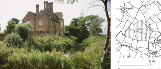 High status moats, such as Tiptofts and Parsonage Farm (see maps left & photo below) were constructed in a single operation, were broad and deep, and formed a complete enclosure.